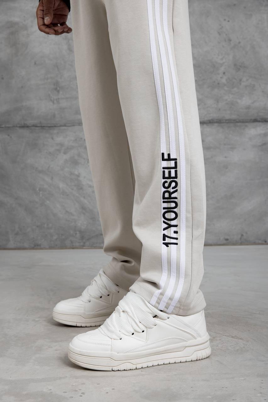 Crafted from premium-quality, soft-touch fabric, they deliver all-day comfort while maintaining a sharp, elevated look. The standout feature is the triple side stripe detailing paired with bold “17. YOURSELF” typography running down the leg — adding a strong identity-driven statement to your outfit.