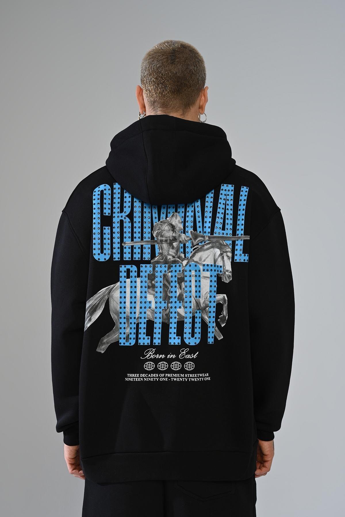 Bring powerful street aesthetics to your wardrobe with the Criminal Defect Horse Rider Oversized Hoodie.