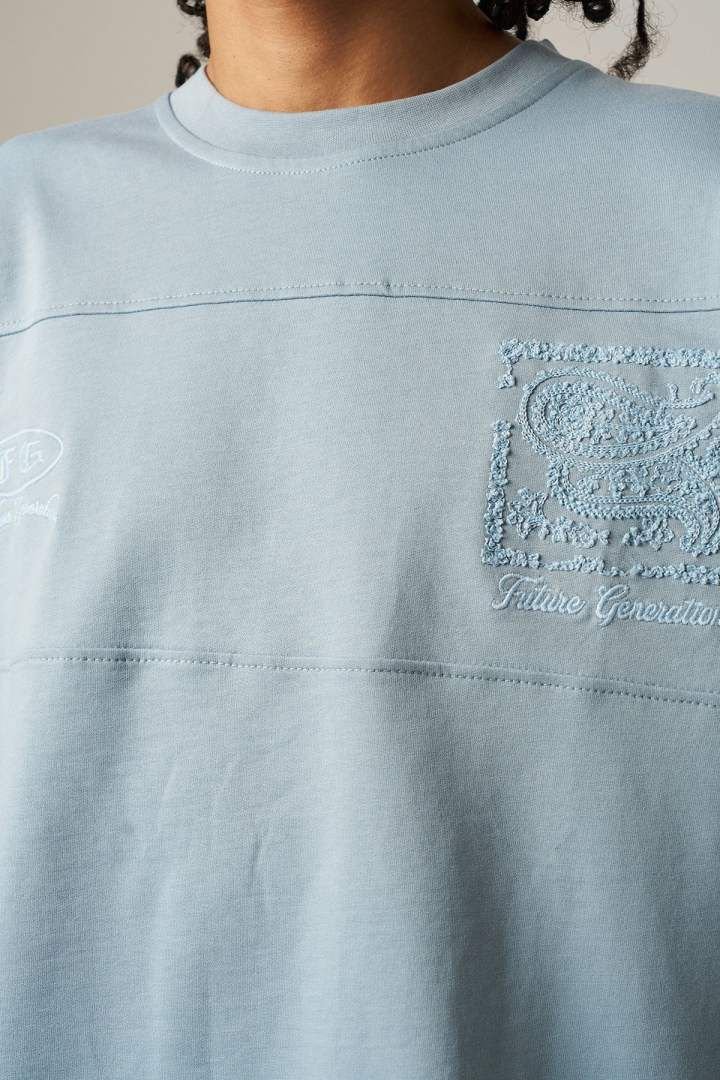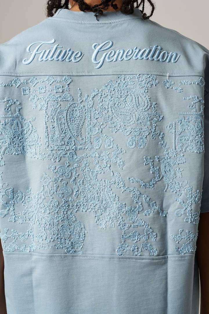The front keeps it minimal with subtle detailing, giving a simple and refined appearance. The back is where the design stands out — featuring a raised textured artwork combined with elegant “Future Generation” embroidery across the upper back.